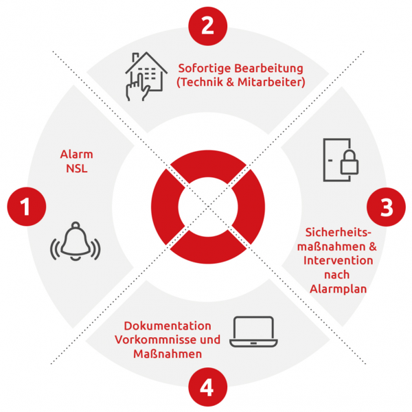 Dadurch können im Alarmfall sofort alle im Alarmplan festgelegten Maßnahmen von Interventionsfachkräften routiniert veranlasst werden.